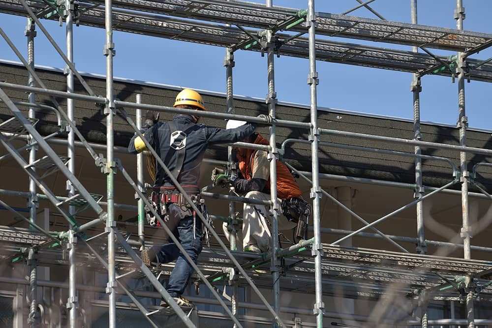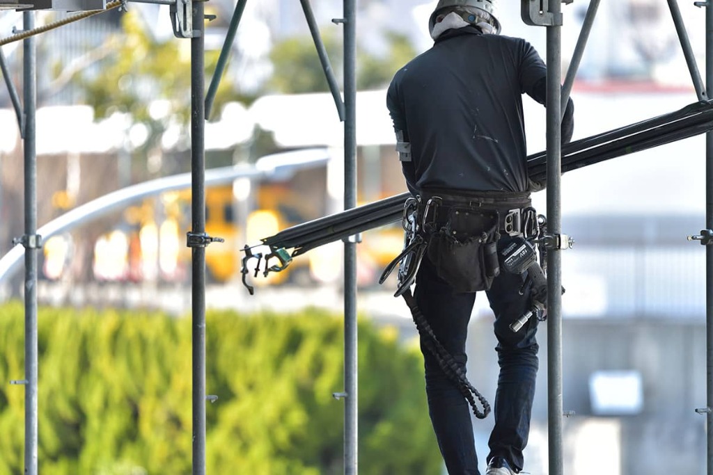 松原市にある弊社では、建設現場の作業で必ず必要な足場工事から、鉄骨鳶工事までさまざまな工事を行っています。